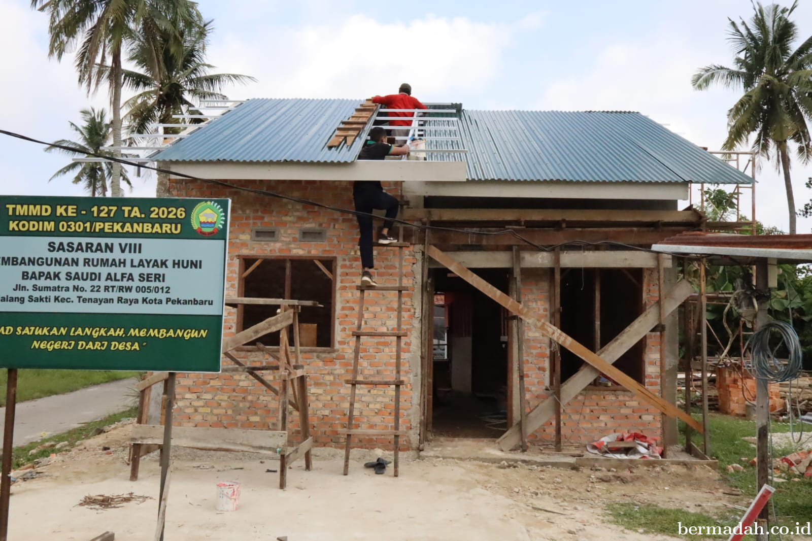 BERMADAH.CO.ID, PEKANBARU - Semangat pengabdian tak surut meski harus bekerja di tengah terik matahari dan menahan lapar serta dahaga. Personel Satgas TNI Manunggal Membangun Desa (TMMD) ke-127 Kodim 0301/Pekanbaru tetap melanjutkan pemasangan seng . . .