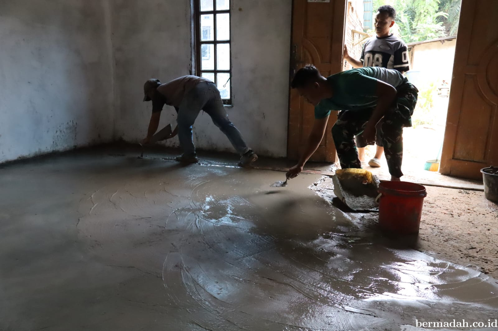 Prajurit TMMD Terus Bergerak, Plester Dinding MCK Posyandu Kasih Ibu Meski Berpuasa0
